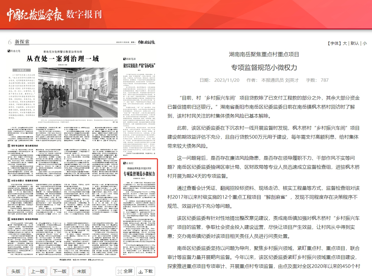 此前,该区纪委监委在下沉农村一线开展监督时发现,枫木桥村“乡村振兴车间”项目建设前期效益评估不充分,且自行贷款500万元用于建设,每年需支付高额利息,给村集体带来较大债务风险。 这一问题背后,是否存在廉洁风险隐患,是否存在领导履职不力、干部作风不实等问题?点点移动端下载纪委监委抽调区审计局、区财政局等专业人员迅速成立监督检查组,进驻枫木桥村开展为期24天的专项监督。 通过查看会计凭证、翻阅招投标资料、现场走访、核实工程量等方式,监督检查组对该村自2017年以来村级实施的12个重点工程项目“解剖麻雀”,发现不同程度存在决策程序不规范、效益评估不充分等问题。 该区纪委监委有针对性地提出整改意见建议,责成南岳镇加强对枫木桥村“乡村振兴车间”项目的监管,争取社会资金投入建设运营,尽快让项目产生效益,让村民从中得到实惠;交办南岳镇纪委对该项目相关责任人员进行问责处置。 点点移动端下载纪委监委坚持以问题为导向,聚焦乡村振兴领域,紧盯重点村、重点项目,联合审计等监督力量开展靶向监督。今年以来,该区纪委监委紧盯乡村振兴领域重点项目建设,探索推进重点项目专项审计、开展重点村专项监督,由点及面对全区2020年以来的450个村级项目进行检查,监督检查组共发现各类问题346个,督促立行立改343个。其中3条涉嫌违纪违法问题线索已向区纪委监委有关部门移交。 该区纪委监委注重把监督优势转化为乡村治理效能,督促区农业农村局等职能部门集体会商,研究出台《点点移动端下载村级工程项目建设管理办法》《点点移动端下载村集体“三资”管理问责办法》等制度,管住村级小微权力运行,持续赋能乡村振兴。(通讯员刘英才)
