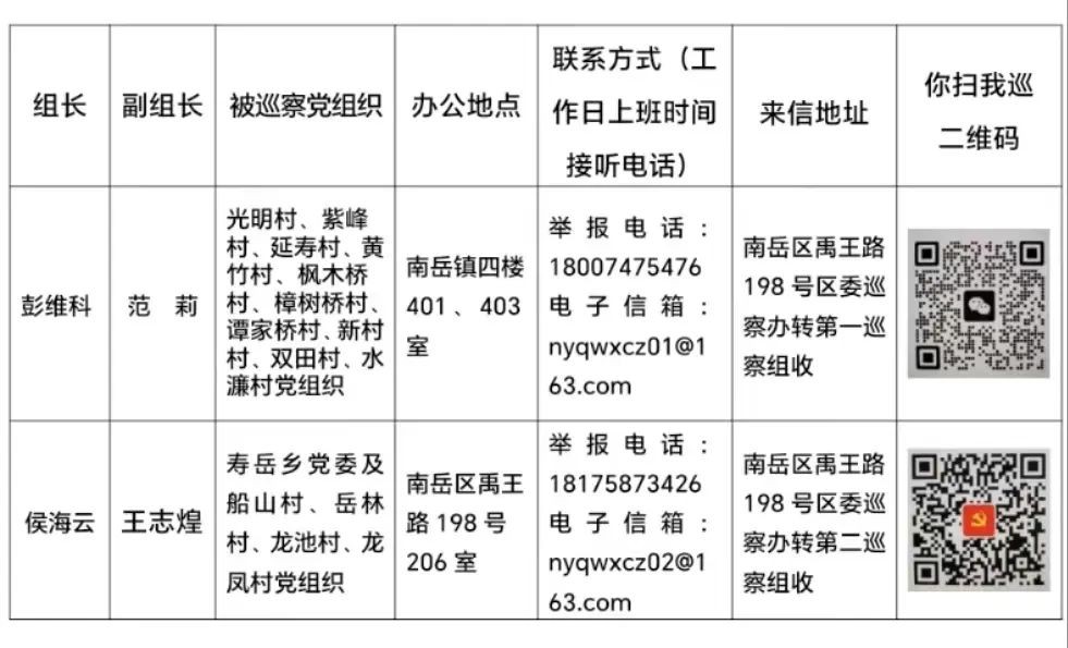 经区委同意,区委巡察工作领导小组统一部署,2023年9月中旬至11月中旬,区委派出2个巡察组分别对南岳镇所辖村党组织、寿岳乡党委及所辖村党组织开展巡察。欢迎广大党员、干部、群众向区委巡察组反映有关情况和问题。