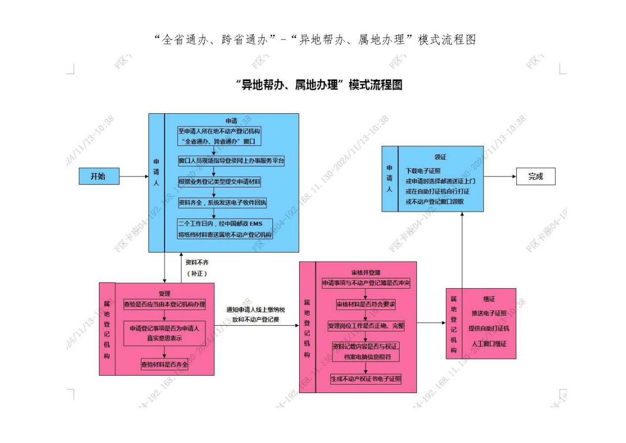 企业群众可以通过网上办理渠道提交业务申请,也可向异地不动产登记中心现场申请办理。三种通办模式流程图如下: