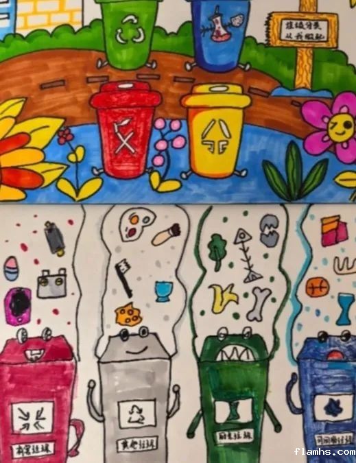 同时组织"大手牵小手"实践活动,家长带着孩子们走进各社区和街道,以点带面当起了垃圾分类倡导员,让垃圾分类自觉践行在每个角落。小朋友们也用手中小小的画笔,通过绘画的方式,对可回收垃圾、厨余垃圾、有害垃圾、其他垃圾等知识加深了了解,更加明白垃圾应该要分类投放。