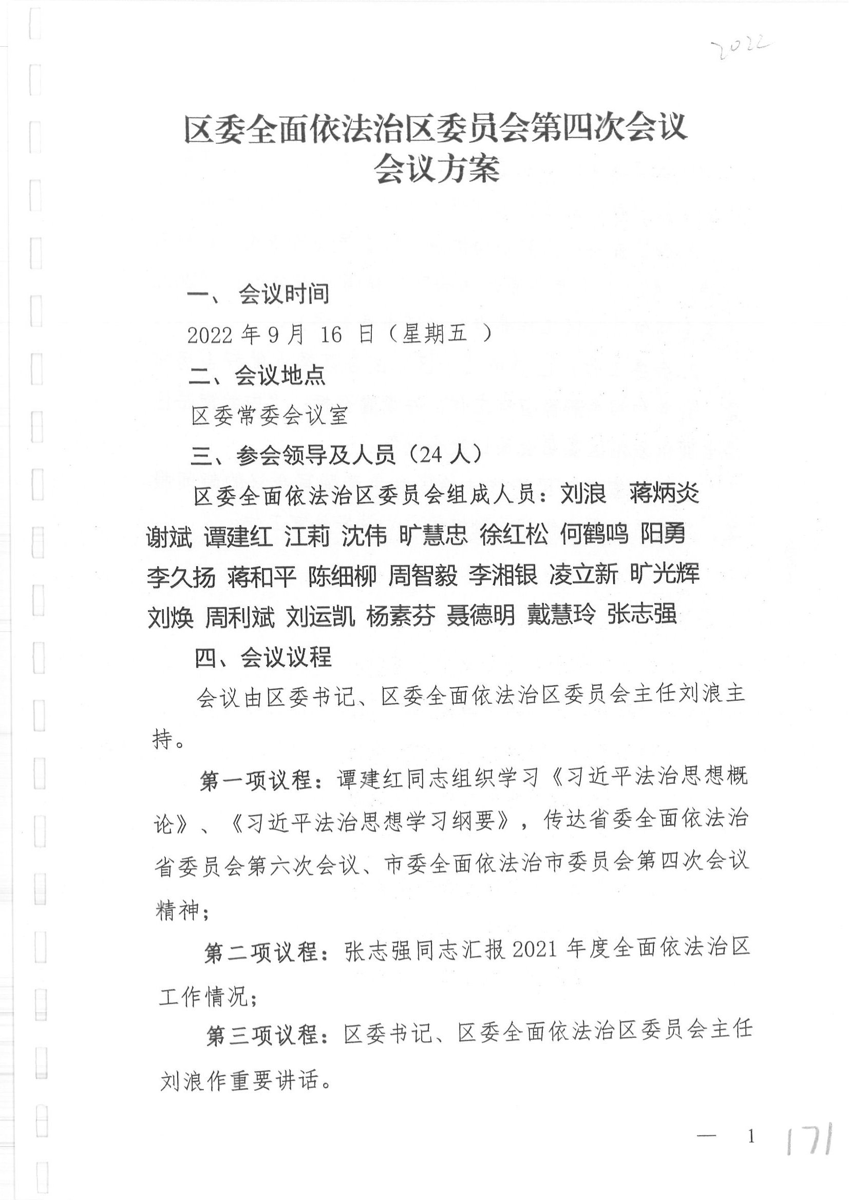 区委全面依法治区委员会第四次会议方案