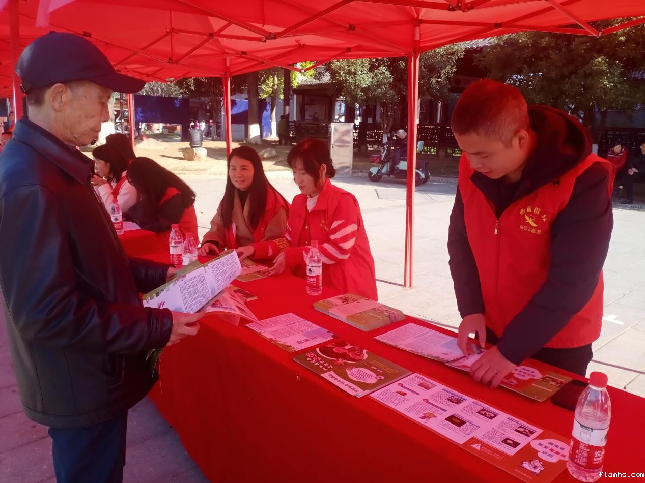 镇食安办在南岳牌坊设立宣传展台,现场接受群众咨询