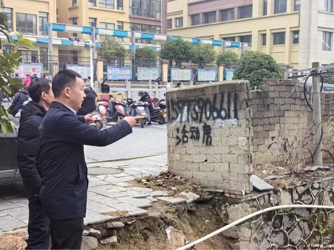3月6日,镇党委书记陈晓武,镇党委委员、副镇长、武装部长凌新春到金月社区督查自建房安全隐患排查工作情况。