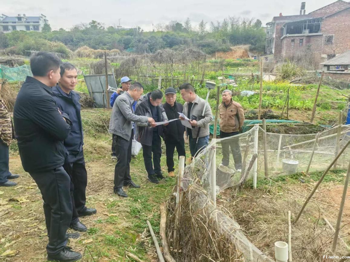 3月3日,镇党委委员、副镇长、武装部长凌新春和自然资源局、第三方公司在金月社区对怡绿茶业进行界址确认工作。