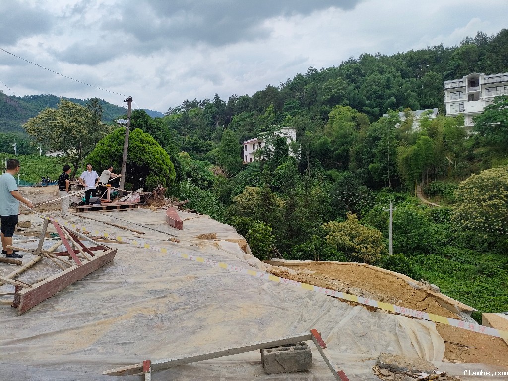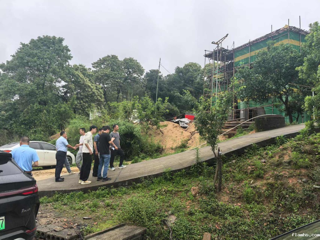 5月22日,镇自然资源所、镇退役军人服务站和技术人员到新村村勘查塌方现场。