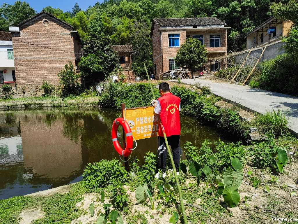 5月13日,烧田村、樟树桥村在重点水域设立“一竿一绳一圈”及防溺水安全警示标牌。
