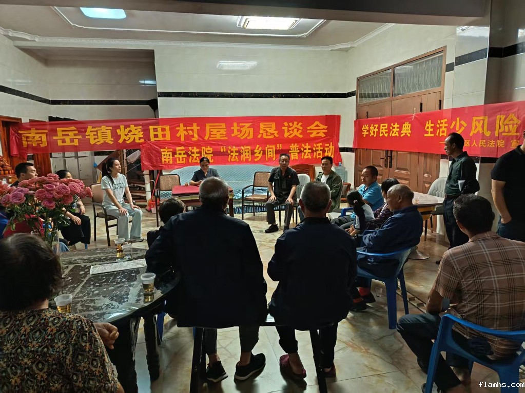 5月15日,烧田村召开屋场恳谈会,配合区人民法院开展“法润乡间”主题普法宣传活动。