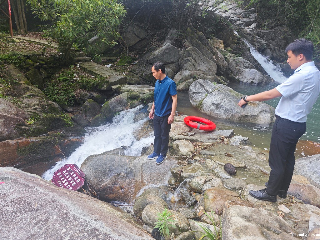 5月20日,镇党委副书记、镇长胡银泉,镇党委委员、副镇长、武装部长凌新春到金月片区重点水域实地巡查“一竿一绳一圈”救生设备配备情况及安全警示标识设置情况。