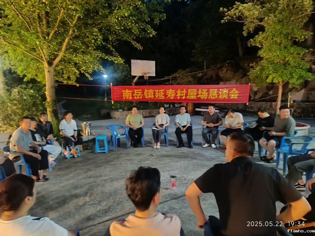 5月22日,镇党委副书记、政法委员周婷,镇党委委员、纪委谭校生在延寿村参加屋场恳谈会。