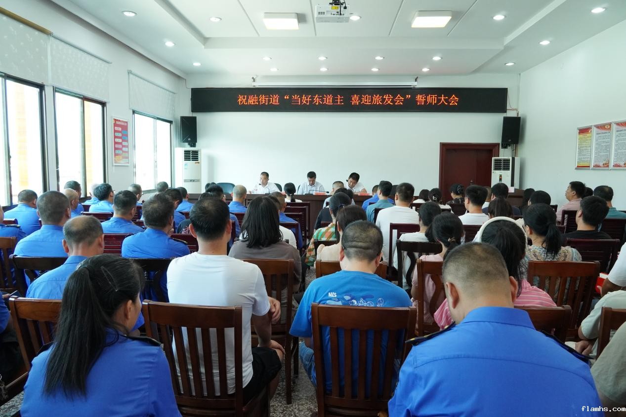为全力冲刺旅发大会旅游环境和城市管理集中攻坚工作,激发街居上下"一切围绕旅发大会转、一切围绕旅发大会干"的精神干劲,9月18日下午,点点移动端下载祝融街道召开"当好东道主 喜迎旅发会"誓师大会,街道全体街居干部和综合行政执法大队工作人员共90余人参会。