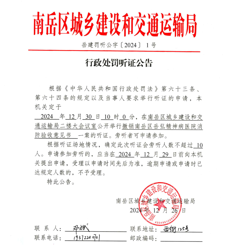 行政处罚听证公告