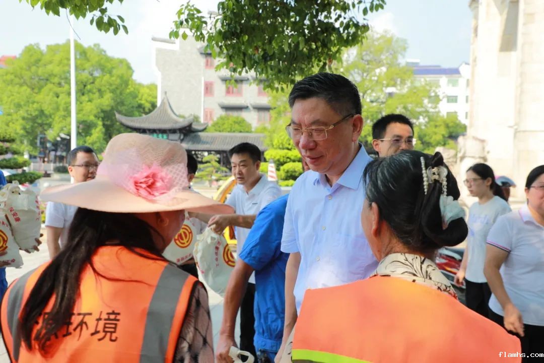 “大家辛苦了!感谢大家不畏酷暑、坚守岗位,天气很热,大家一定要注意防暑降温,劳逸结合,务必把自身的健康和安全放在首位。”在牌坊广场,刘浪看望慰问了高温作业的交警、旅警、环卫工人、城管执法人员等劳动者代表,与大家亲切握手,并递上防暑降温物资。刘浪高度赞扬了他们不惧“烤”验、无私奉献的精神,勉励大家继续保持敢打硬仗、能打胜仗的优良作风,以最佳的身体和精神状态投入到工作中去,为南岳高质量发展贡献力量。