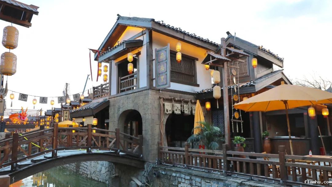 麻石古街、亭台楼阁、飞檐翘角、小桥流水,一排排黄色的灯笼错落有致地高挂在古民居屋檐和古街两侧……走进衡山脚下的“南岳里”,古风古韵之风扑面而来。