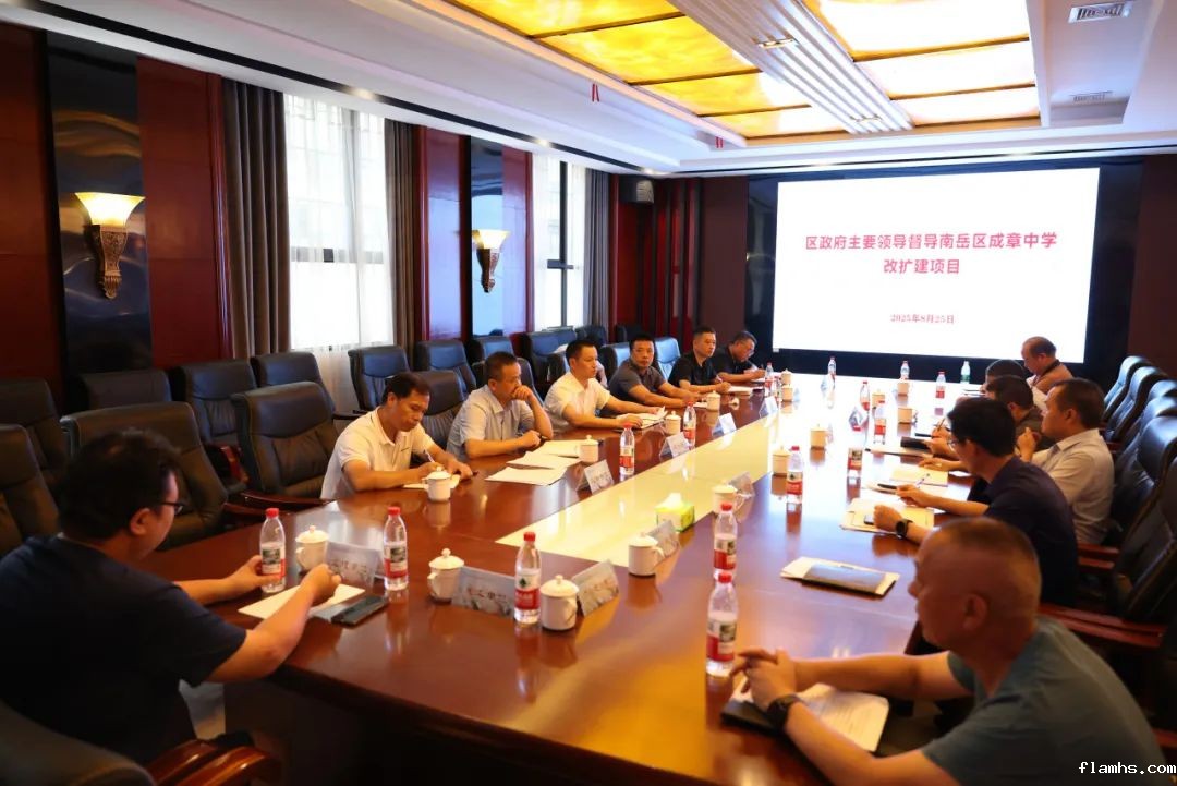 蒋炳炎要求,要提高政治站位,以“万无一失”的担当扛牢责任。南岳成章中学是我区基础教育的“窗口学校”,承载着无数家庭的期待。职能部门要靠前扛责,区教育、住建、应急、市场监管、消防等部门要组成联合督导组,驻点办公,对施工安全、设施验收、消防备案等关键环节开展安全生产大检查;财政部门要开辟“绿色通道”,确保剩余资金及时拨付。学校要主动履责,校领导班子要牵头成立开学筹备组,提前介入设施调试、环境消杀、制度完善等工作。施工单位要守诺尽责,严格执行合同条款,对施工质量负直接责任,确保安全质量。