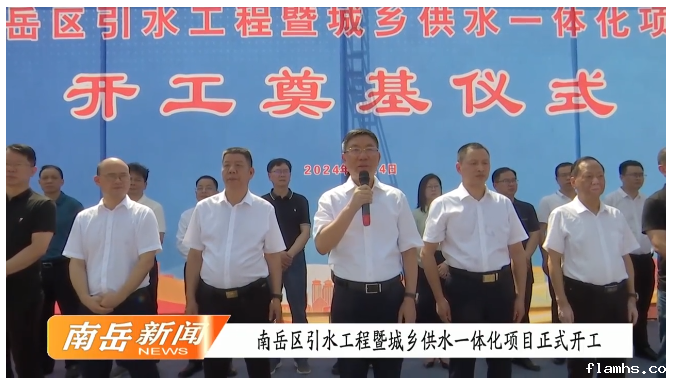 蒋炳炎在致辞中表示,该工程是南岳人民多年来的期盼和夙愿,是一件功在当代、利在千秋的重大民生项目,也是解决居民游客“用水难”问题的基础设施补短板项目,对于推动南岳经济社会高质量发展、加快建设世界级文化旅游目的地,具有重要的支撑作用。希望项目指挥部和业主单位靠前指挥、加强监管,施工单位、监理单位及相关责任单位本着高度负责的态度,强化安全意识、质量意识、效率意识,高标准建设、规范化施工、快节奏推进,努力把该项目建成经得起历史检验的民心工程、幸福工程、精品工程、示范工程,实现“幸福之水”湘江来。